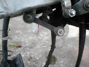 リアリンクをつなぎ止めているピボットシャフトのボルトを緩めます。