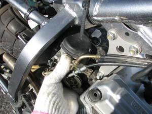 最後に、キャブレターがゴムホースに引っかかっている部分を処置します。